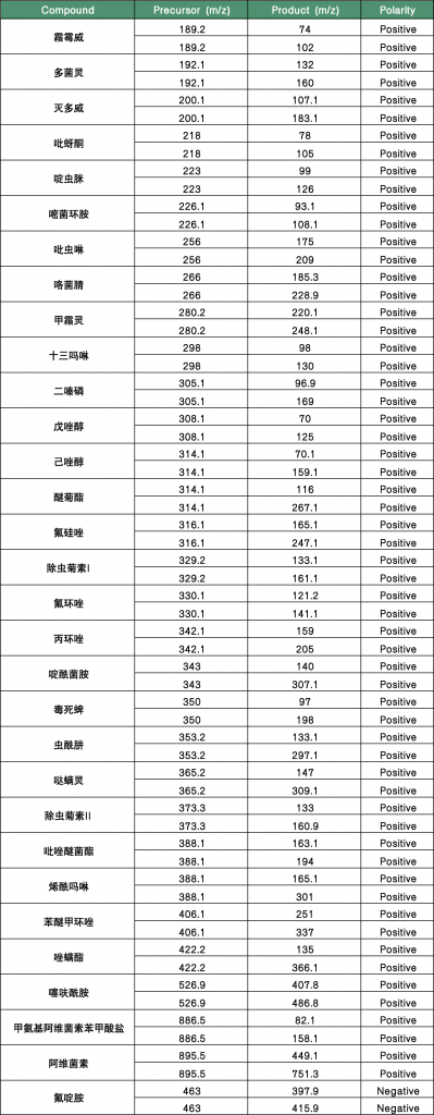 图1 添加水平为0.1mg/kg人参样品中农药残留量的TIC图(LC-MS/MS)