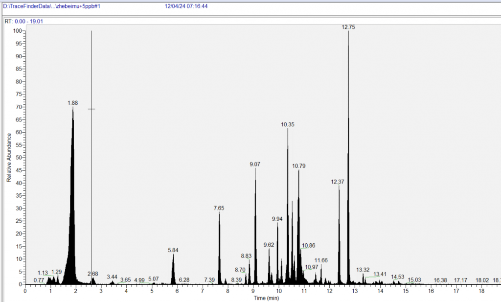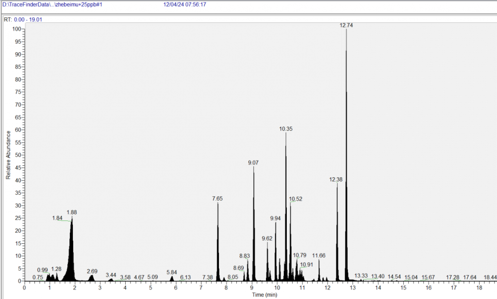 图17 添加水平为0.1mg/kg浙贝母样品中农药残留量的TIC图(LC-MS/MS)