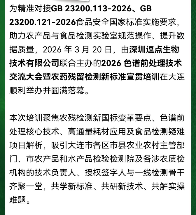 新标准落地・技术赋能前行|2026 色谱前处理技术交流大会暨农残新国标宣贯培训圆满落幕