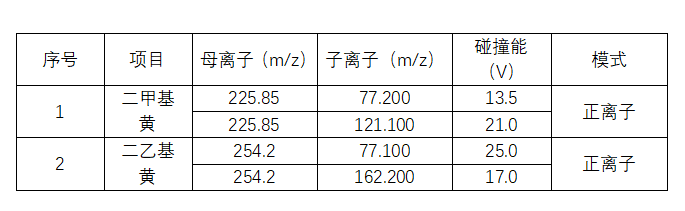 2.1 二甲基黄和二乙基黄色谱参考条件
