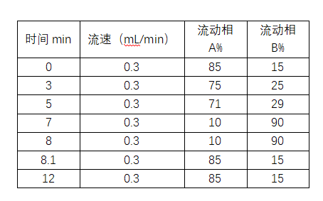 洗脱方式:梯度洗脱,见表2;柱温:40℃