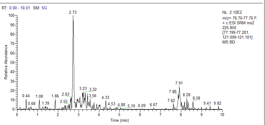 鞘气压力:40 arb ,辅气压力:8 arb ; 离子传输管:300 ℃ ,辅气温度:300 ℃