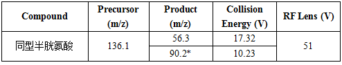 取50 µL血浆于PPT的孔中,加入0.5mol/L DDT。用热封膜仪封膜后,1500 rpm涡旋2 min,室温放置10min。再移取300 µL甲醇于PPT的孔中,用热封膜仪封膜后,1500 rpm涡旋2 min.。将PPT与接收板置于正压提取装置中,调节压力,使滤液的流速保持1-2秒/滴,收集滤液,上LC-MS/MS系统中进行检测。