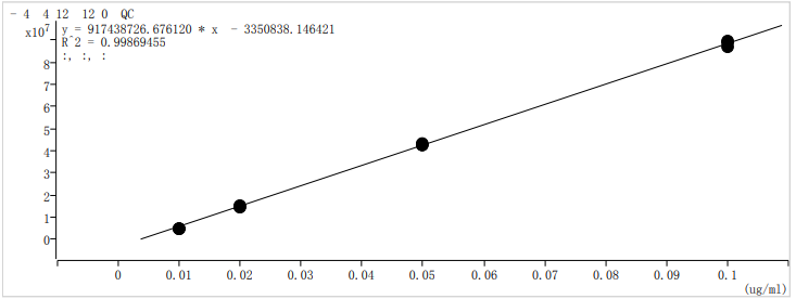 准确量取10g匀浆好的样品于50mL离心管中,加入盐包A和5mL水,涡旋振荡1min,(加标液时需要在这一步进行加标),再加入盐包B,混匀静置15min,准确加入10mL提取液,涡旋振荡10min后静置10min,再置于冷冻冰箱冷冻10min,加入盐包C和一颗陶瓷均质子,振荡2min,以8000r/min离心5min,取6mL上清液于离心管D中涡旋净化2min,8000r/min离心5min,吸取1mL净化液氮吹近干,加入1mL乙酸乙酯复溶,过0.22μm滤膜于棕色进样品中,上GCMS/MS检测。